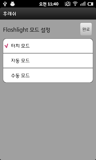 터치모드 - 터치하고 있는 동안만 켜집니다.